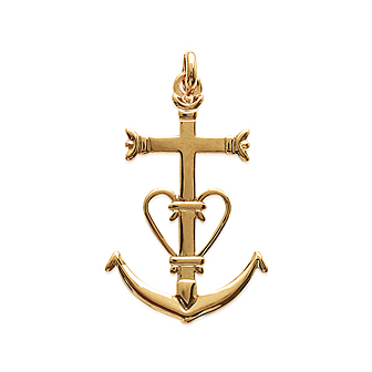 Hänge 18k gulddoublé kors, med betydelsen tro-hopp-kärlek.